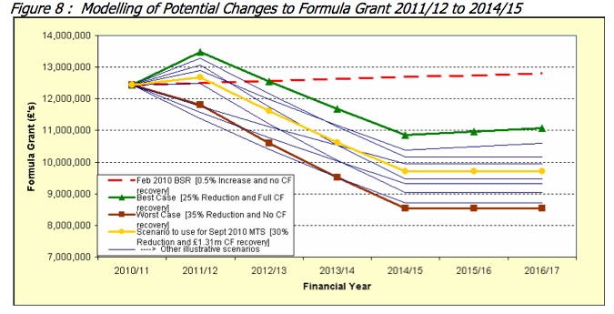 The details of any central government cut affecting the City Council’s funding are expected to be announced on the 20 October 2010 in a report of a Comprehensive Spending Review the Government is conducting. This will affect the funding the council gets for the financial year 2011-2012. At the moment council is making an educated guess based what was said in the coalition’s emergency budget and the levels of cuts central Government departments appear to be contemplating as well as other sources of hints as to what might happen to local government grants eg. the content of consultations.